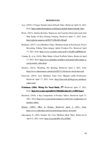 The final report aims to know how to design a video of Sentral Kampung Pempek as one of culinary tourism destination in Palembang. The writer used Research and Development (R&D) method modified by Sukmadinata. This method consists of three steps, they are (1) Preliminary Study, (2) Model Development, (3) Final Product Testing. The video can be used as a medium to promote sentral kampung pempek as one of culinary tourism destinations. The video can be used as a guideline for tourists to find the information about Sentral Kampung Pempek. This video consists of the location of Sentral Kampung Pempek, the environment of Sentral Kampung Pempek, the kinds of food that were sold in Sentral Kampung Pempek and the range of prices of the foods.