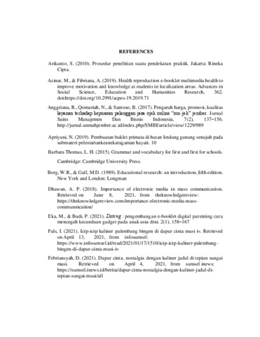 | Uncontrolled Keywords: | Keywords: e-booklet, research and development, preliminary study, model development |