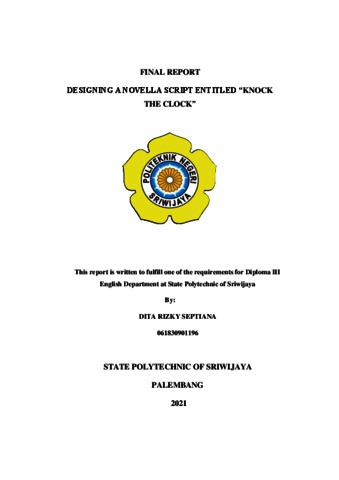 SEPTIANA, DITA RIZKY (2022) DESIGNING A NOVELLA SCRIPT ENTITLED “KNOCK THE CLOCK”. Other thesis, Politeknik Negeri Sriwijaya.