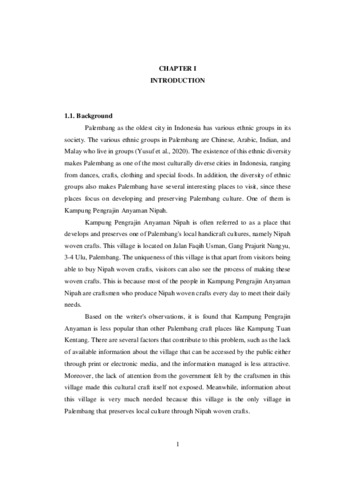 NURHUDA, TRILISA (2022) DESIGNING A VIDEO SCRIPT OF KAMPUNG PENGRAJIN ANYAMAN NIPAH IN PALEMBANG. Other thesis, Politeknik Negeri Sriwijaya.