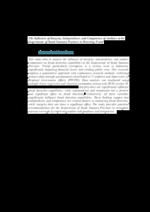 Uncontrolled Keywords: | Kata Kunci : Integritas, Independensi, Kompetensi, Kemampuan Mendeteksi Fraud, Inspektorat Provinsi Sumatera Selatan. |