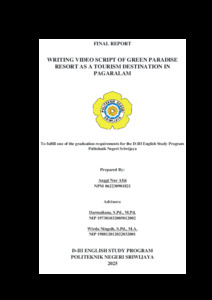 Afni, Anggi Nur (2025) WRITING VIDEO SCRIPT OF GREEN PARADISE RESORT AS A TOURISM DESTINATION IN PAGARALAM. Diploma thesis, Politeknik Negeri Sriwijaya.