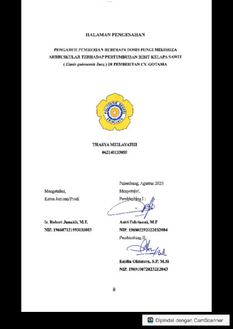 Meilayathi, Thasya (2025) PENGARUH PEMBERIAN BEBERAPA DOSIS FUNGI MIKORIZA ARBBUSKULAR TERHADAP PERTUMBUHAN BIBIT KELAPA SAWIT (Elaeis guineensis Jacq) DI PEMBIBITAN CV.GOTAMA. Diploma thesis, Politeknik Negeri Sriwijaya.