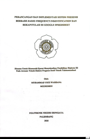 Wardana, Muhammad Yogi (2025) PERANCANGAN DAN IMPLEMENTASI SISTEM PRESENSI BERBASIS RADIO FREQUENCY INDENTIFICATION DAN REKAPITULASI DI GOOGLE SPREDSHEET. Diploma thesis, Politeknik Negeri Sriwijaya.