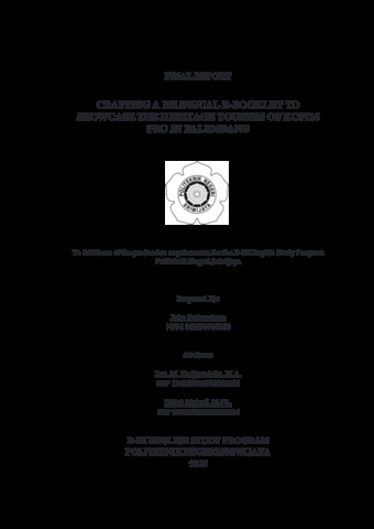 Prihandana, Jaka (2025) CRAFTING A BILINGUAL E-BOOKLET TO SHOWCASE THE HERITAGE TOURISM OF KOPI16 PRO IN PALEMBANG. Diploma thesis, Politeknik Negeri Sriwijaya.
