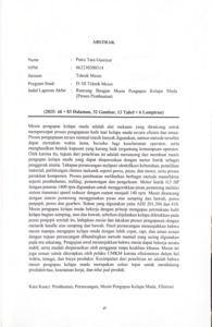 Mesin pengupas kelapa muda adalah alat mekanis yang dirancang untuk mempercepat proses pengupasan kulit luar kelapa muda secara efisien dan aman. Proses pengupasan secara manual masih banyak digunakan, namun metode tersebut dapat memakan waktu lama, berisiko bagi keselamatan operator, serta menghasilkan bentuk kupasan yang kurang baik tergantung kemampuan operator. Oleh karena itu, tujuan dari penelitian ini adalah merancang dan membuat mesin pengupas kelapa muda yang dapat dioperasikan dengan motor listrik sebagai penggerak utama. Tahapan perancangan meliputi identifikasi kebutuhan, pemilihan material, perhitungan elemen mekanik seperti poros, pisau, dan motor, serta proses perakitan komponen. Proses pembuatan melibatkan berbagai metode manufaktur seperti pembubutan, milling, pemotongan dan pengelasan. Motor listrik 0,5 HP dengan putaran 1400 rpm digunakan untuk menggerakkan pisau pemotong melalui sistem transmisi speed reducer dengan output menjadi 140 rpm. Mesin dirancang dengan sistem pemotong menggunakan pisau atas samping dan bawah, poros penjepit, poros dan gearbox. Bahan yang digunakan yaitu AISI 201,304 dan 410. Mesin pengupas kelapa muda bekerja dengan prinsip mengupas permukaan kulit kelapa bagian samping, atas dan bawah, sebelum dijalankan kelapa diletakkan pada poros penjepit setelah itu, hidupkan mesin dan lakukan proses pengupasan dengan menarik handle atas samping dan bawah. Hasil perancangan menunjukkan bahwa mesin mampu mengupas kelapa muda dengan lebih cepat, rapi, dan aman sesuai dengan tujuan perancangan dibandingkan metode manual yang sering digunakan pada era sekarang. Pengujian awal menunjukkan bahwa mesin dapat bekerja secara stabil, serta mudah dioperasikan oleh pengguna tanpa keahlian khusus. Mesin ini juga sesuai untuk diterapkan oleh pelaku UMKM karena efisiensinya dalam hal waktu, tenaga, dan biaya produksi. Kesimpulan dari penelitian ini adalah bahwa mesin pengupas kelapa muda merupakan solusi tepat untuk mendukung produktivitas, keamanan kerja, dan nilai jual produk. Kata Kunci: Pembuatan, Perancangan, Mesin Pengupas Kelapa Muda, Efisiensi